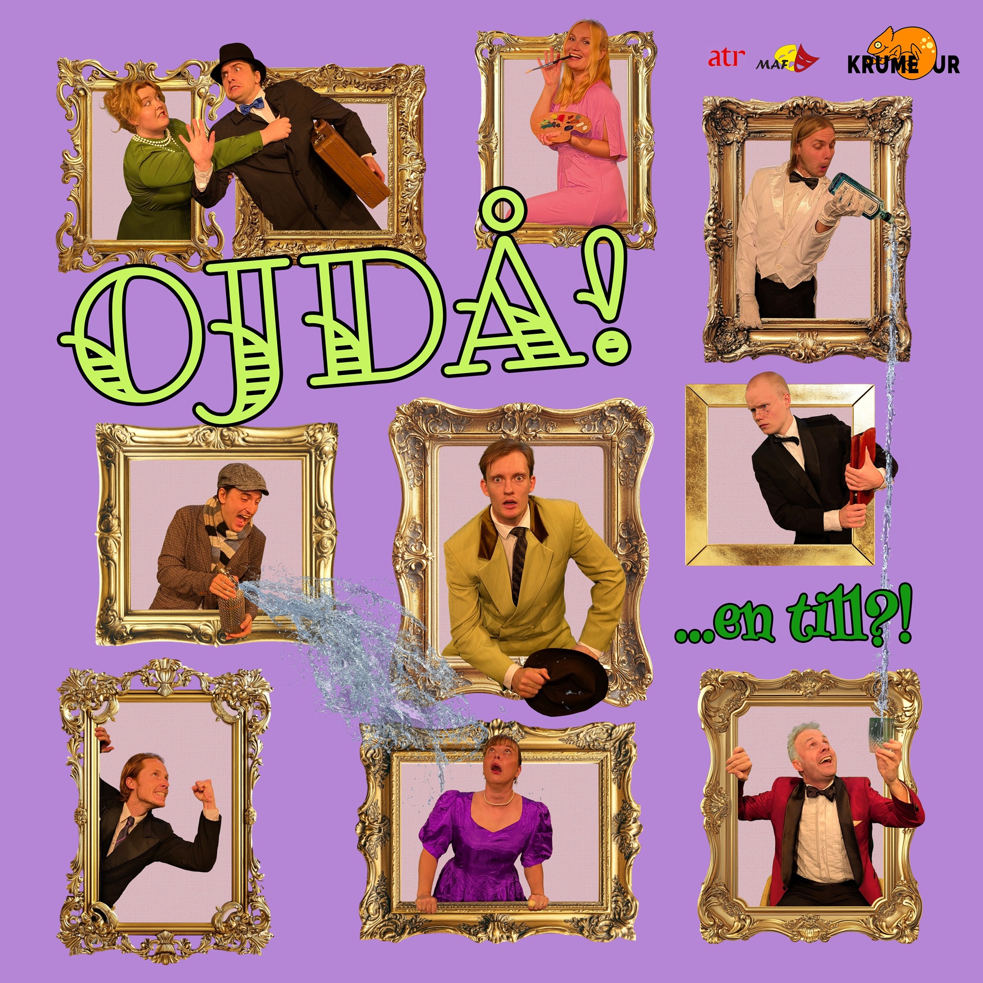 Ojdå! …en till!? är skriven av Ray Cooney & Tony Hilton i översättning av Sven Melander och spelas av Teater Krumelur i samarbete med ATR.